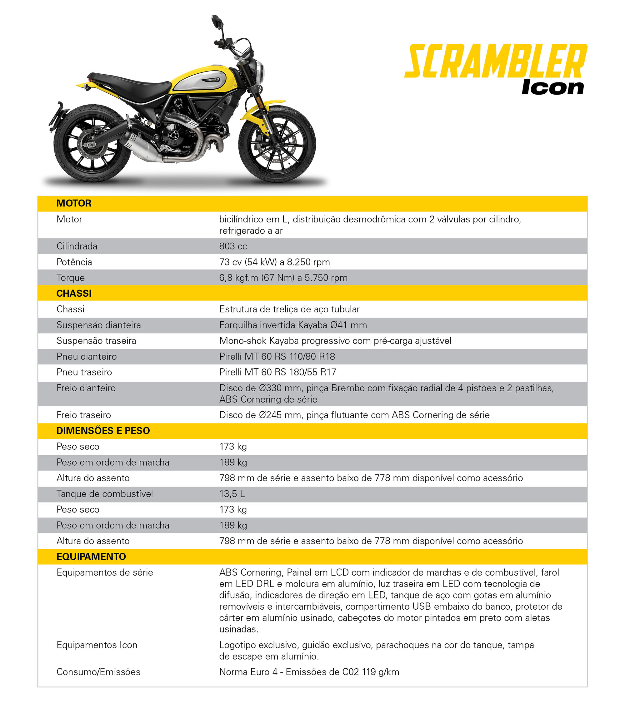A nova Scrambler Icon acaba de desembarcar no Brasil. O novo modelo trás painel com indicador de marcha e nível de combustível, embreagem hidraúlica ajustável, setas de LED e farol com DRL, novas rodas de liga-leve, novo design das gotas laterais do tanque, motor All Black, nova ponteira de escape, novo formato e densidade da espuma do assento e nova configuração de suspensão. Confira e faça já sua pre-reserva!